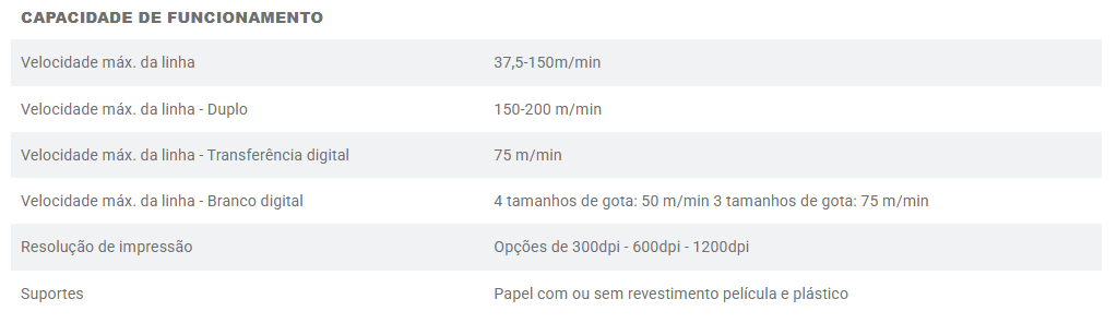 Desenvolvida para rolo a rolo ou chapas, imprime em rótulos, etiquetas, bilhetes, formulários, produtos de segurança e publicidade endereçada.